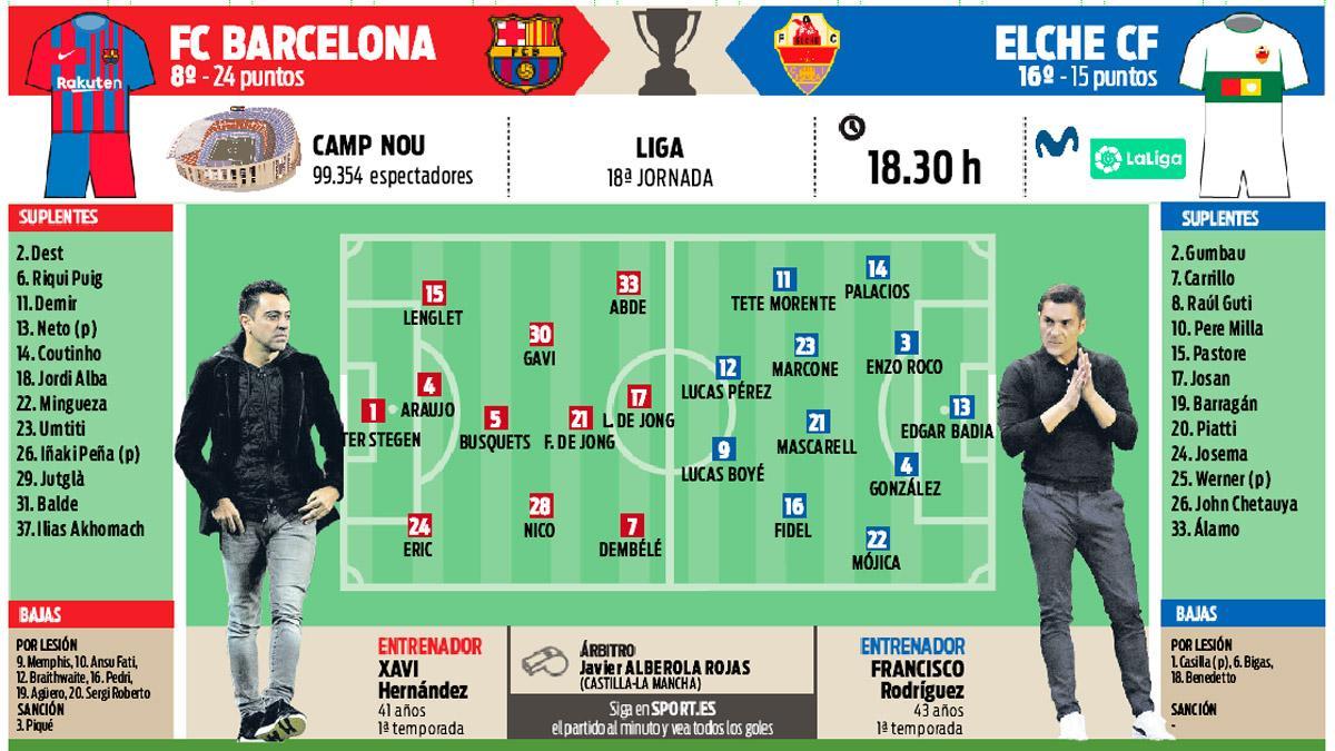 Svoj pohľad zverejnili španielske denníky. Tie sa zhodli, že v bránke nastúpi Marc-André ter Stegen a v poli sa objavia aj Éric García, Ronald Araujo, Sergio Busquets, Nico González, Frenkie de Jong, Abde Ezzalzouli a Ousmane Dembélé. V každom prípade však platí, že rozdiely v zostavách sú a pohľad jednotlivých denníkov vyzerá nasledovne: