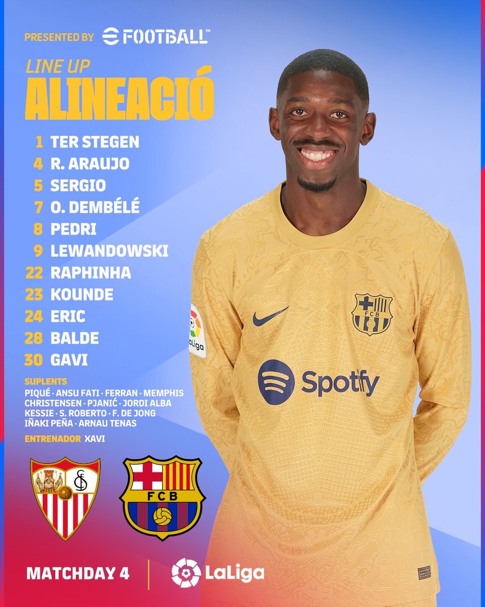 Katalánci sa dnes predstavia na pôjde Sevilla FC, kde sa pokúsia vybojovať plný počet bodov. Xavi posiela do zápasu nasledujúcu základnú zostavu: