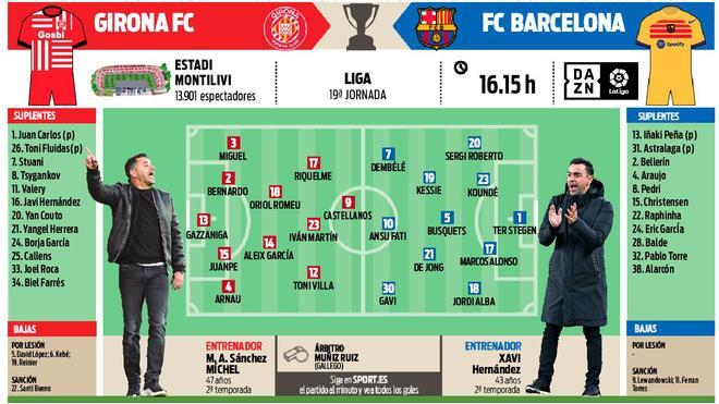 Katalánci dnes cestujú do Girony na ligové derby. Opäť platí, že nepôjde o jednoduchý zápas, hoci papierové predpoklady hovoria niečo iné. Potrebné sú samozrejme 3 body. V akej zostave sa ich Katalánci pokúsia vybojovať? Pozor - stretnutie sa hrá dnes už od 16:15!
