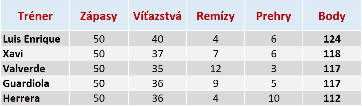 Xavimu sa dá vyčítať všeličo, ale treba povedať, že jeho bilancia v Primera División je vynikajúca. Španielske médiá uvádzajú, že bývalý záložník zaznamenal po prvých 50 zápasoch vo funkcii trénera Barcelony druhý najlepší rekord v histórii klubu. Zároveň sa tréner Blaugranas dostal aj medzi najlepších trénerov v histórii La Ligy.