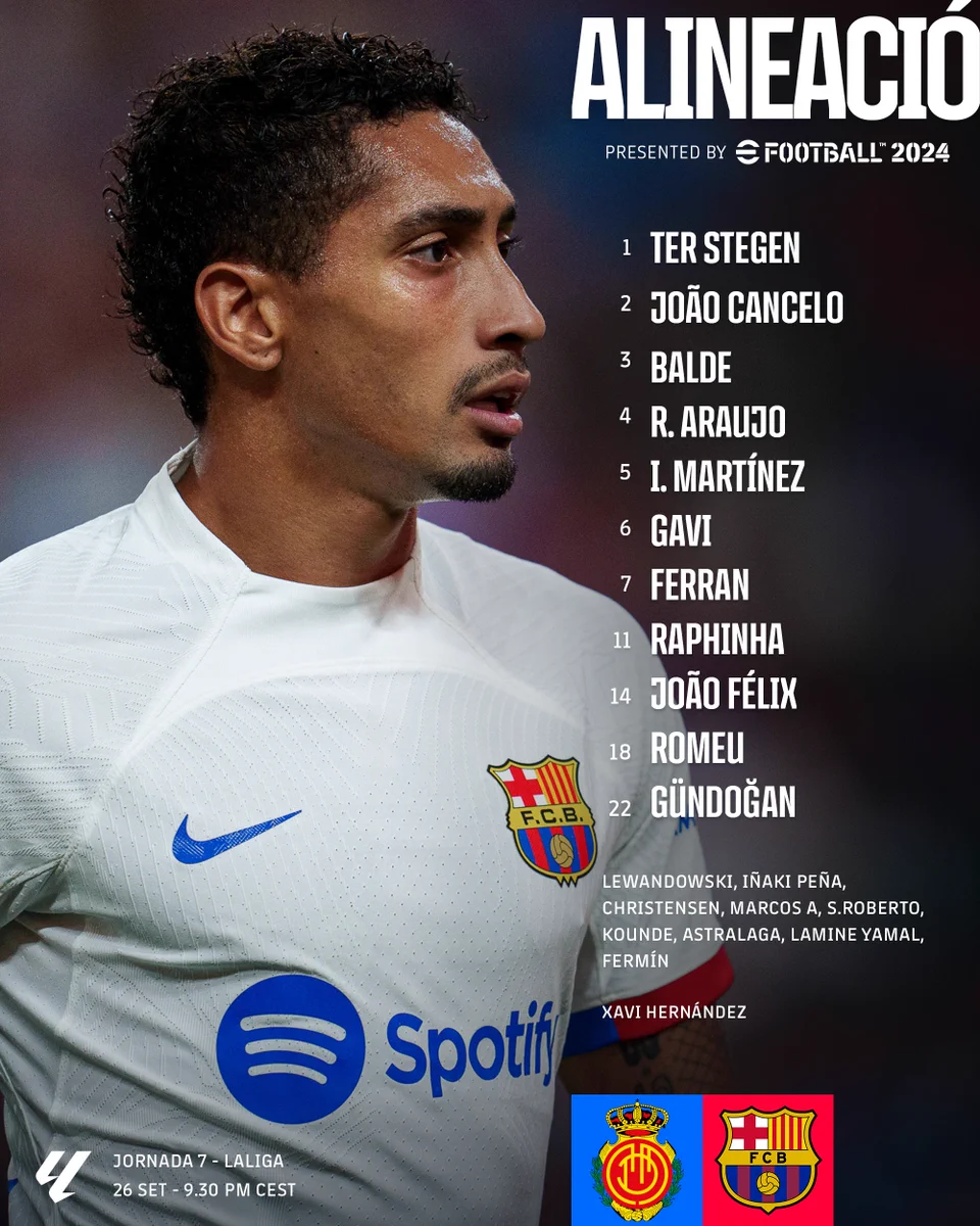 Katalánci sa dnes pokúsia vybojovať plný počet bodov v náročnom zápase na Malorke. Od úvodných minút sa Estadi Mallorca Son Moix predstaví takáto základná jedenástka Blaugranas.