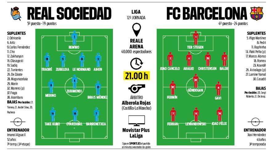 Tréner Kataláncov má v každom prípade k dispozícii takmer celý káder s výnimkou zranených Frenkieho de Jonga a Sergiho Roberta. Môže – a musí – vyskladať veľmi silnú základnú zostavu, aby Blaugranas uhrali na Anoeta plný počet bodov. Prognózy španielskych denníkov vyzerajú nasledovne.