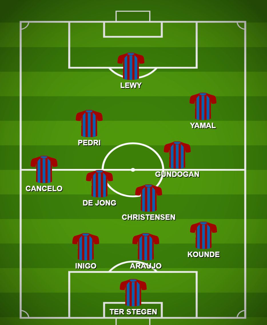 Útok by mali tvoriť Robert Lewandowski a Lamine Yamal, ktorý má za sebou sedem zápasov v základnej zostave. Ďalší mladý hráč Pau Cubarsi by však mohol stretnutie začať na lavičke. Jeho miesto by zaujal Iñigo Martínez, ktorý by vytvoril stopérsku dvojicu s Ronaldom Araújom. Podľa Miguela sa očakáva, že Xavi sa bude spoliehať na skúsenosti a dôveru týchto hráčov, keďže nechce na Cubarsiho vyvíjať taký veľký tlak a nároky. Napriek ich slabej forme sa očakáva, že Jules Koundé a João Cancelo budú hrať na krajoch obrany od prvej minúty.