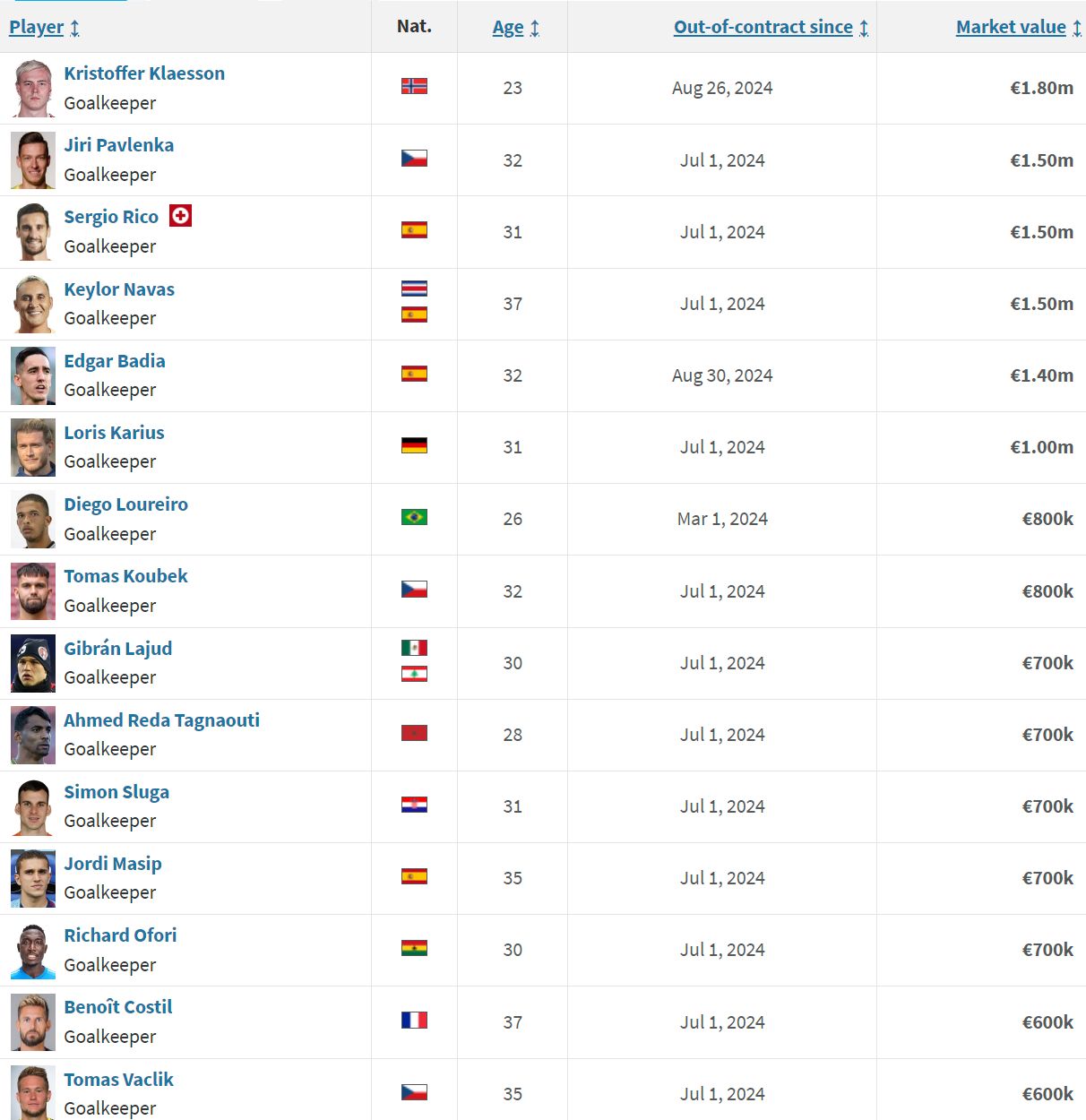 Ako informovala Laia Tudel v programe El club de la mijanit, športové riaditeľstvo Barcelony zváži možnosti voľných brankárov, ktorých môže podpísať už teraz, alebo brankárov s platnou zmluvou v súvislosti s príchodom do klubu v zime. Zoznam voľných brankárov v súčasnosti vyzerá takto: