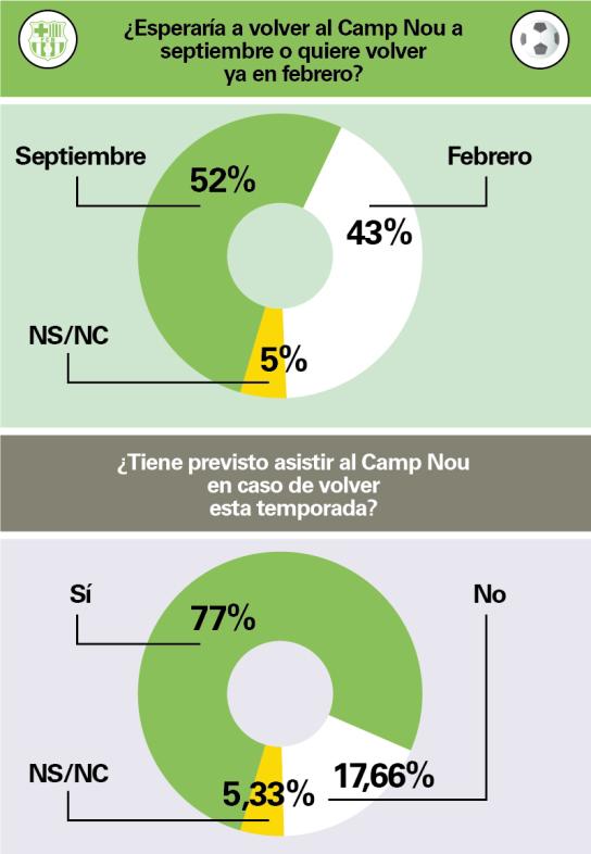 Odpoveď na otázku, či socio predpokladá príchod na Camp Nou v prípade návratu na toto miesto ešte v tejto sezóne, je tiež dosť špecifická. Je zrejmé, že hlasy „áno“ tu museli mať výraznú prevahu (77%), ale je záhadou, že až 17,66% odmietlo prísť na štadión.
