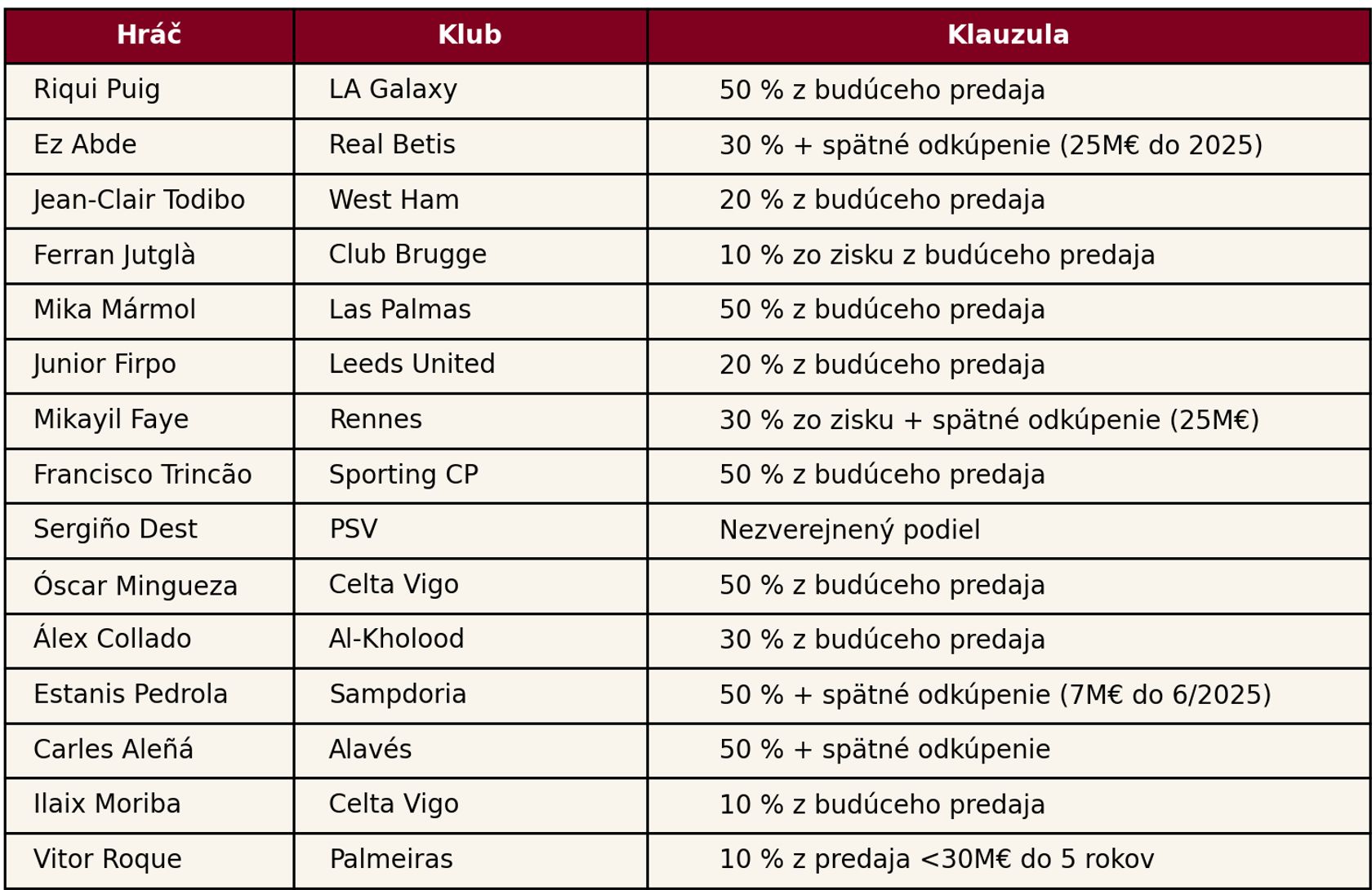 Kompletný zoznam hráčov s predajnými klauzulami