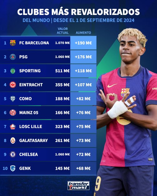 Sezóna 2024/25 bola pre Barcelonu z pohľadu športového úspechu výnimočná – Hansi Flick priviedol mužstvo k historickému domácemu treble. No veľké ovácie si klub zaslúži aj v oblasti trhovej hodnoty kádra. Podľa údajov portálu Transfermarkt zaznamenali Blaugranas najvyšší nárast hodnoty kádra v celej Európe – až o 190 miliónov eur za jedinú sezónu!