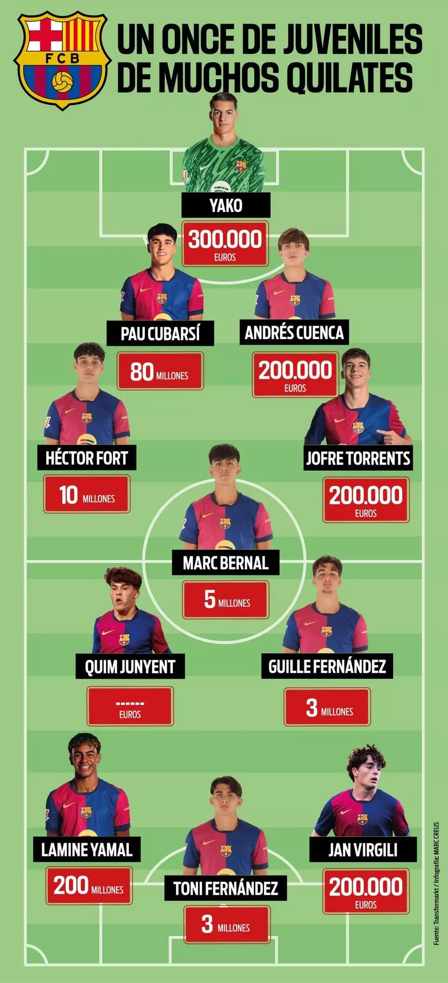 Poznámka: Quim Junyent ako jediný nemá oficiálne stanovenú hodnotu na Transfermarkte, keďže ešte nemá stabilnú profesionálnu stopu.