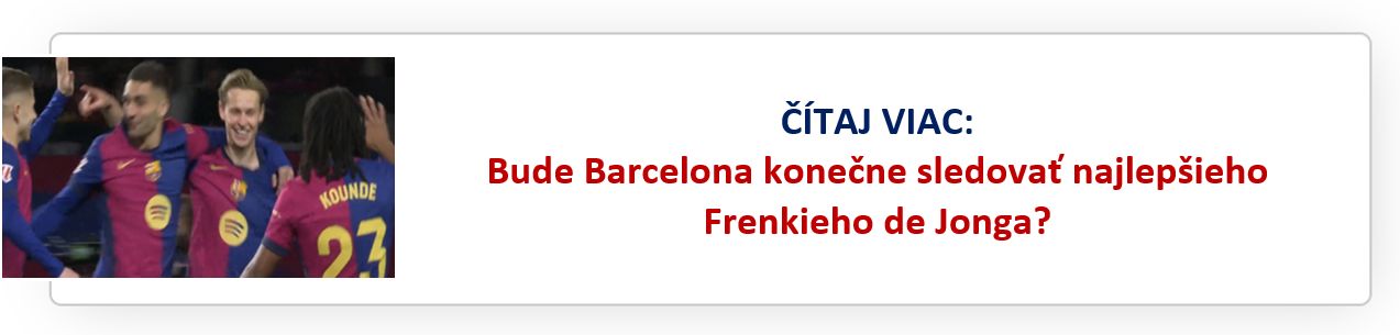 Okrem toho, rokovania o novej zmluve pre Frenkieho de Jonga na priaznivejších finančných podmienkach by mohli Barcelone výrazne uľahčiť situáciu vzhľadom na pravidlá finančnej fair play a urýchliť návrat k pravidlu 1:1.