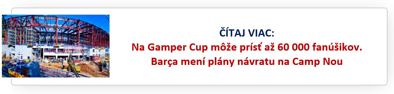 Preto je pre Barçu kľúčové, aby už v auguste boli tieto VIP lóže fyzicky hotové a uvedené do prevádzky. Najlepšou príležitosťou má byť práve Gamper Cup, plánovaný na 10. augusta.