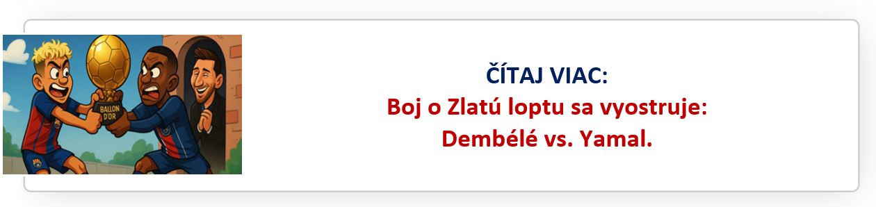 A tu prichádza ten najväčší paradox. Real Madrid, odveký rival Barcelony, môže Yamalovi pomôcť. Ak totiž Madridčania vyradia PSG v semifinále, otvoria tým súboj o Ballon d'Or a znížia šance Dembélého. A to aj napriek tomu, že Lamine Yamal sám so svojím tímom v tejto sezóne na titul v Lige majstrov ani MS klubov nesiahne.