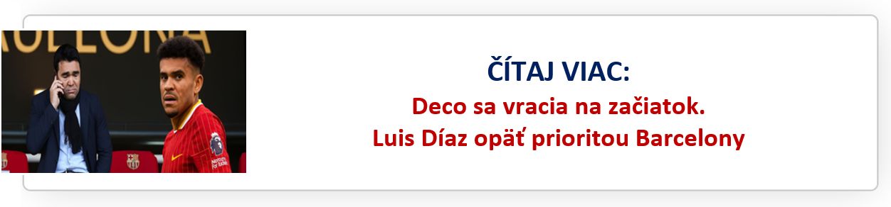 Po tragickom úmrtí Jotu musí Liverpool posilniť ofenzívu a zároveň získať financie. Len za Wirtza a Frimponga minuli Angličania takmer 170 miliónov eur. V médiách sa v posledných dňoch objavili mená ako Rodrygo či Alexander Isak ako možné posily. Do boja o Luisa Díaza navyše rázne vstúpil Bayern, ktorý je údajne pripravený predložiť vyššiu ponuku než Barça. Bude preto záležať aj na vôli samotného hráča, či bude ochotný tlačiť na odchod práve smerom na Camp Nou — a či Barcelone bude stáť za to ešte navýšiť svoju ponuku.