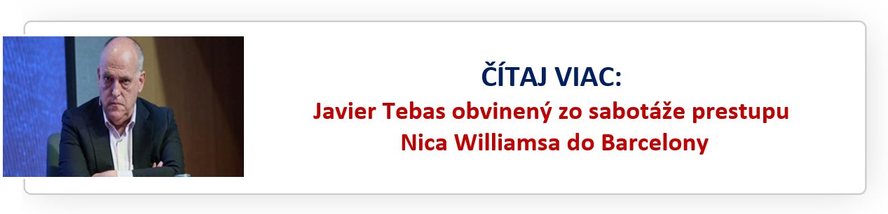 "Z toho, čo som čítal, Nico Williams žiadal záruku registrácie. Neviem presne za akých podmienok, ale klub ako Barcelona nechcel takúto záruku dať," povedal Tebas.