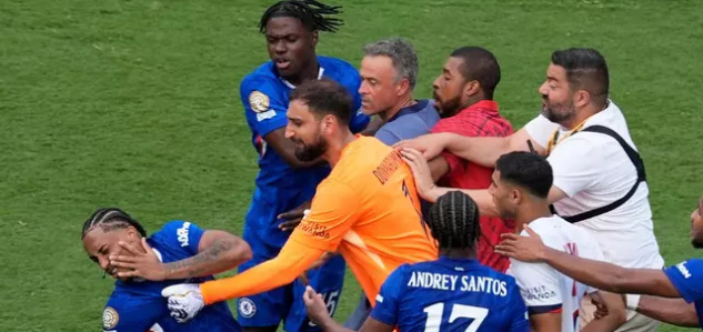 Najväčší rozruch však nastal až po záverečnom hvizde. Na ihrisku vypukla hromadná šarvátka medzi hráčmi a realizačnými tímami oboch klubov. V chaose plnom výčitiek a fyzických potýčok nečakane „dominoval“ aj Luis Enrique. Tréner PSG sa rozbehol k Joãovi Pedrovi, ktorého udrel otvorenou dlaňou do krku. Útočník Chelsea sa zvalil na trávnik a situáciu museli upokojovať členovia oboch lavičiek.