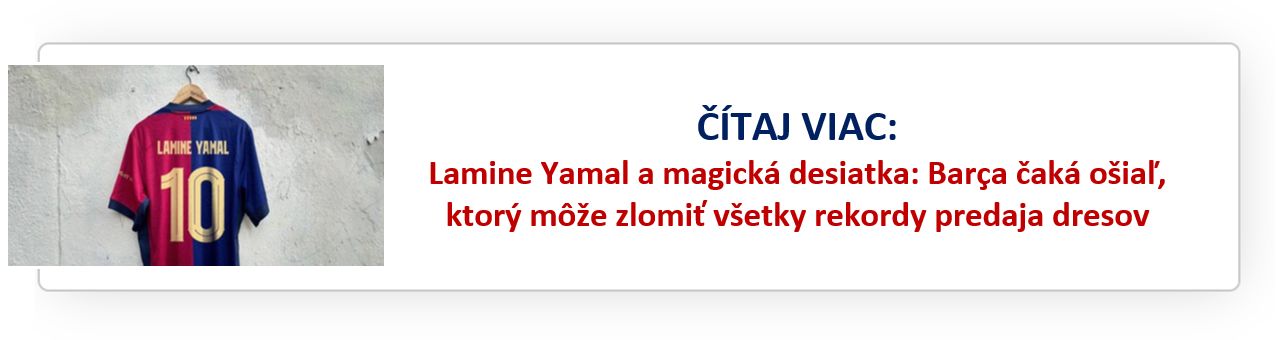 V stredu FC Barcelona oficiálne oznámila predĺženie zmluvy s Lamine Yamalom a zároveň potvrdila, že mladý klenot z Rocafonda ponesie od novej sezóny na chrbte číslo 10. Hoci len nedávno dovŕšil 17 rokov, klub mu zveril ikonické číslo po Ansu Fatim, ktoré predtým nosili legendy ako Messi, Ronaldinho či Maradona.