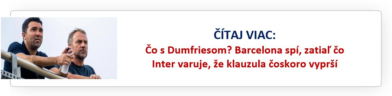 Aj keď sa meno Denzela Dumfriesa v médiách spomínalo už skôr, celá vec má niekoľko háčikov. Tým najzásadnejším je cena – 25 miliónov eur, ktorú si za svojho hráča pýta Inter Miláno. Barcelona si v súčasnej ekonomickej situácii takýto výdavok na náhradníka dovoliť jednoducho nemôže.