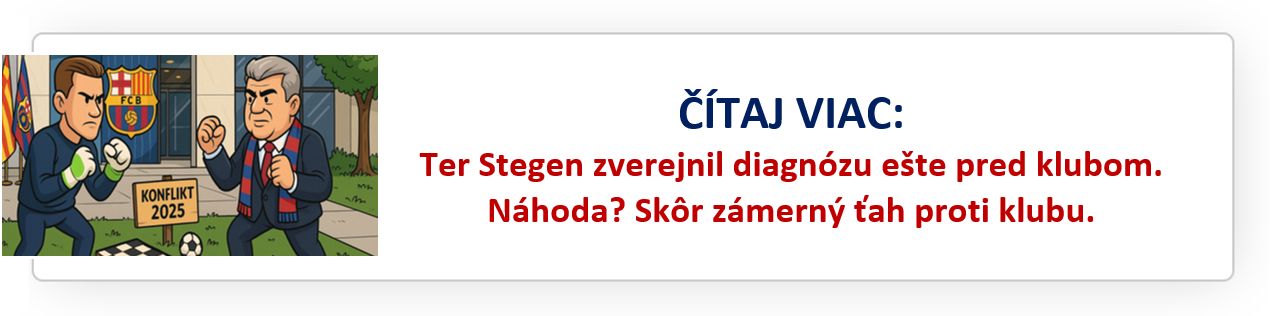 Ter Stegen v minulom týždni verejne vyhlásil, že bude mimo hry približne tri mesiace. Klub s tým nesúhlasí. Podľa informácií z Barcelony sa očakáva výpadok minimálne na štyri až päť mesiacov, čo je kľúčový rozdiel – najmä pre možnosť uvoľniť 80% hráčovho platu a zaregistrovať ďalšie posily, napríklad Joana Garcíu.