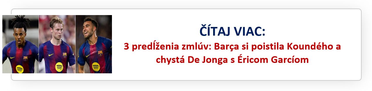 Najbližšie k podpisu sú Frenkie de Jong (zmluva do 2028) a Jules Koundé s Éricom Garcíom, ktorí by mali predĺžiť až do roku 2030. Prví dvaja to už verejne potvrdili, pri Garcíovi sa očakáva rýchla dohoda.