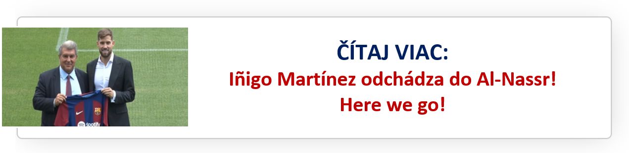 Iñigo Martínez (34) definitívne opúšťa FC Barcelonu a zamieri do saudskoarabského klubu Al-Nassr, kde pôsobí aj Cristiano Ronaldo. Klub potvrdil katalánskemu denníku Mundo Deportivo, že prestup je na spadnutie – stane sa bezodplatným, no pre Barçu znamená výrazné odľahčenie mzdového rozpočtu o 14 miliónov eur.