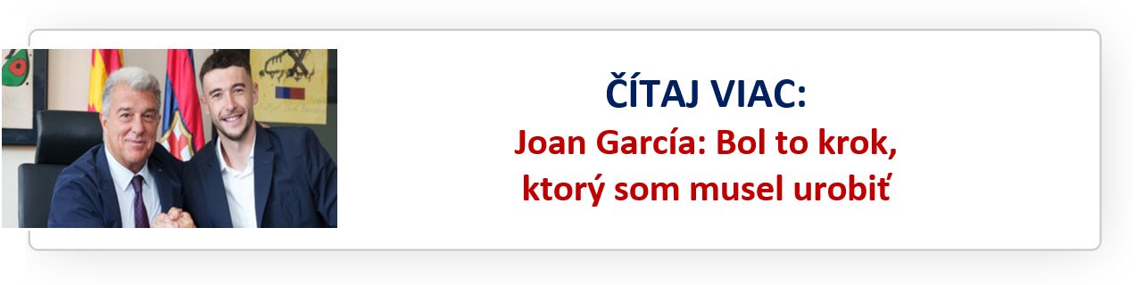 Nedeľný večer v rámci Gamper Cupu (21:00) bude pre Joana Garcíu výnimočný. Bude to jeho prvý zápas pred domácimi fanúšikmi v drese Blaugranas, a to len niekoľko týždňov po tom, čo Barcelona aktivovala jeho výkupnú klauzulu v Españole. García je považovaný za veľkú investíciu do budúcnosti a jeho príchod sa časovo prekrýva s horúcou kauzou okolo Marca-André ter Stegena.