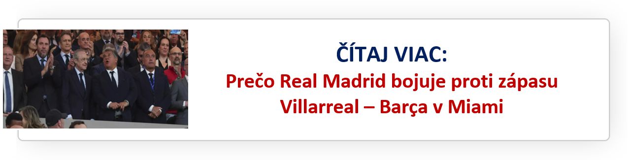 "V Copa del Rey sa duel Marbella – Atlético hral v Malage a nešlo cez žiadne zhromaždenie. Kluby sú suverénne rozhodnúť, kde nastúpia. O tejto téme sme diskutovali už v rokoch 2018–2019 a väčšina klubov súhlasila. Villarreal je za, Barcelona takisto. Talianska Serie A chce hrať v USA alebo Austrálii. Supercopa sa už roky hrá v Saudskej Arábii. Robí sa z toho väčší problém, než aký v skutočnosti je."
