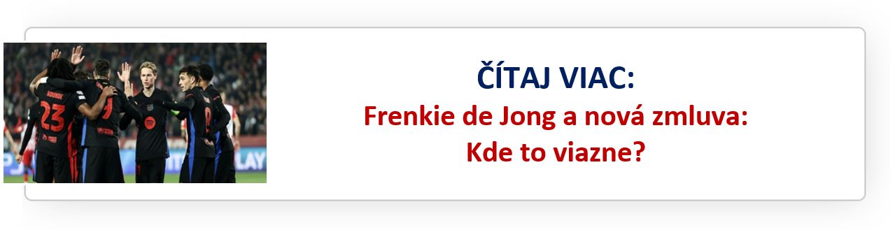 Situácia je komplikovaná tým, že De Jong už nepracuje s agentom a všetko rieši vlastným spôsobom. Jeho aktuálny kontrakt z roku 2019 obsahuje viaceré odložené platby, ktoré sa mali kumulovať v poslednom roku zmluvy. Práve sezóna 2025/26 tak predstavuje extrémne vysokú záťaž pre mzdovú štruktúru klubu.