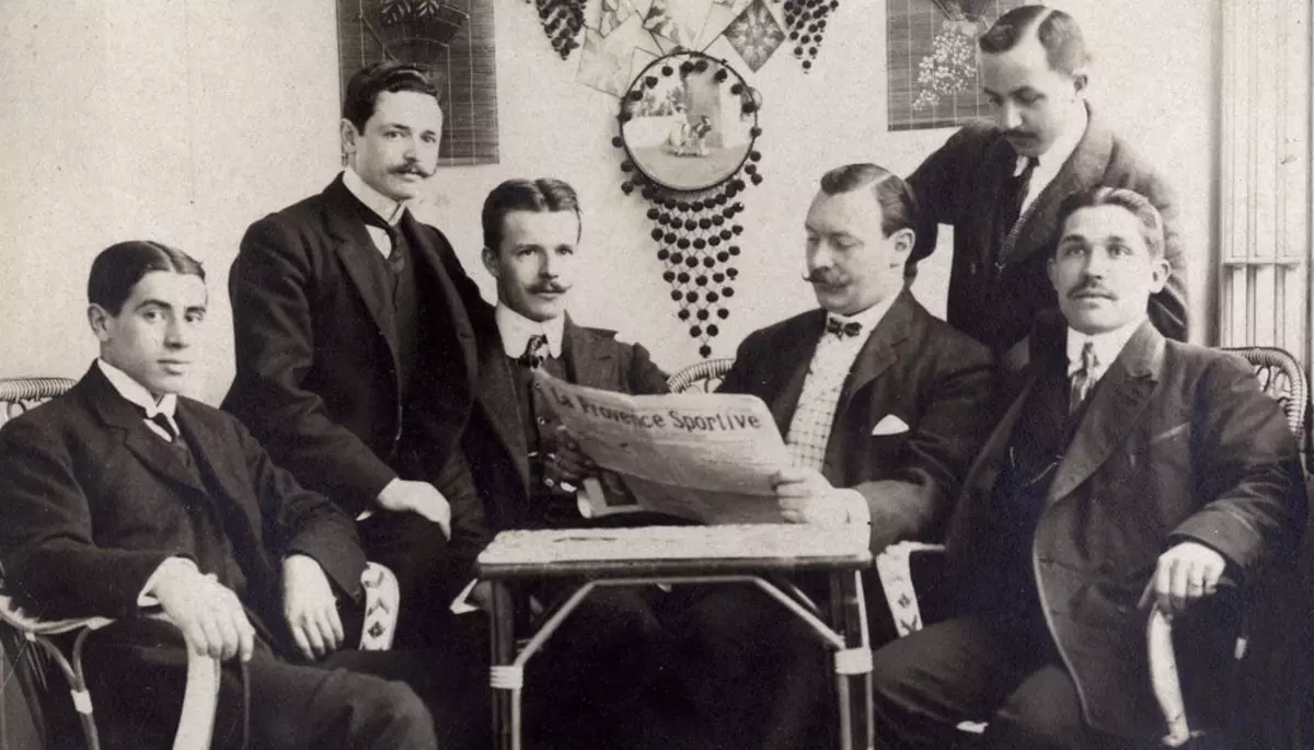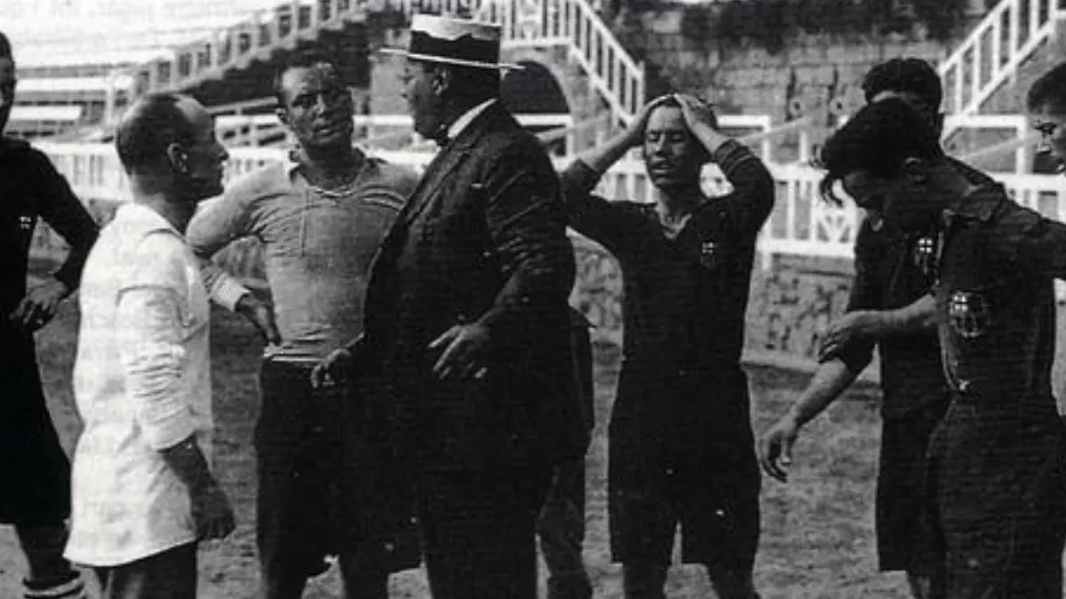 Vicente Reig, druhý zľava (horná rada), bol hráčom (najstarším) a prezidentom (1908) FC Barcelona.