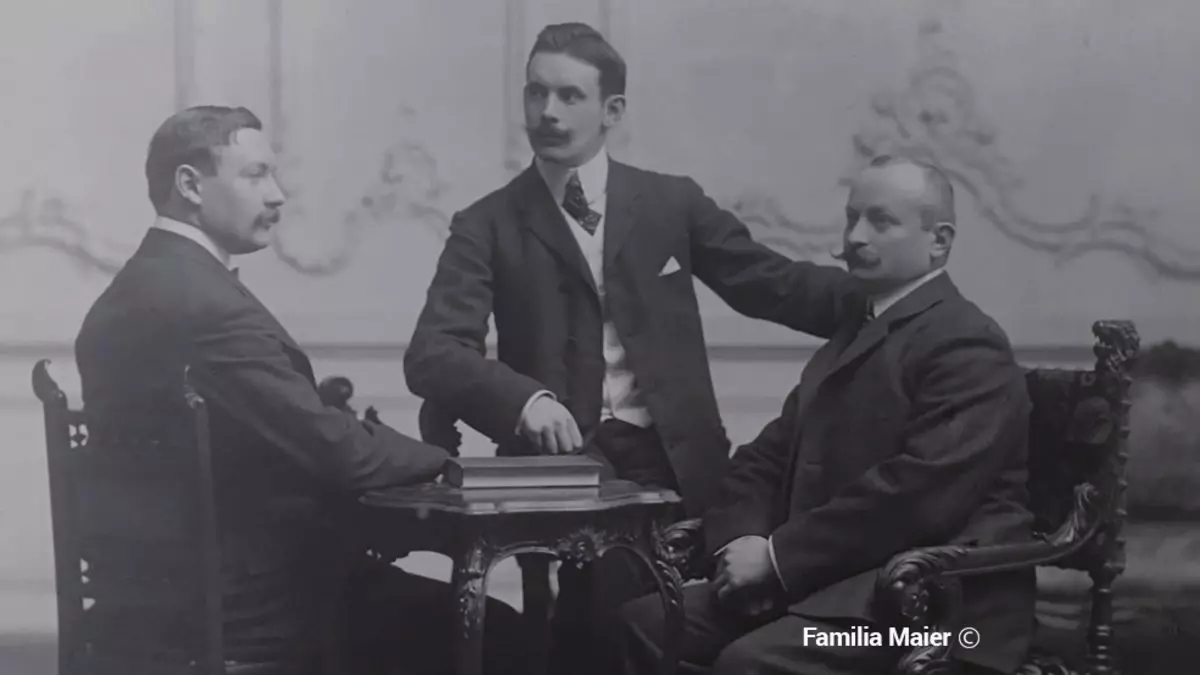 Hans Gamper (vľavo) spolu s Ottom Maierom (vpravo). Identita osoby medzi nimi nie je známa.