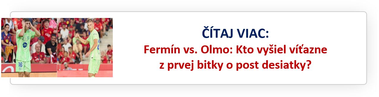 Olmo je navyše jednou z veľkých stávok klubu – Barcelona za neho pred rokom zaplatila 60 miliónov eur Lipsku. V uplynulej sezóne sa stal dôležitým článkom pri zisku domáceho treble, hoci ho brzdili zranenia. Ak je fit, jeho miesto v základe bolo prakticky nespochybniteľné.