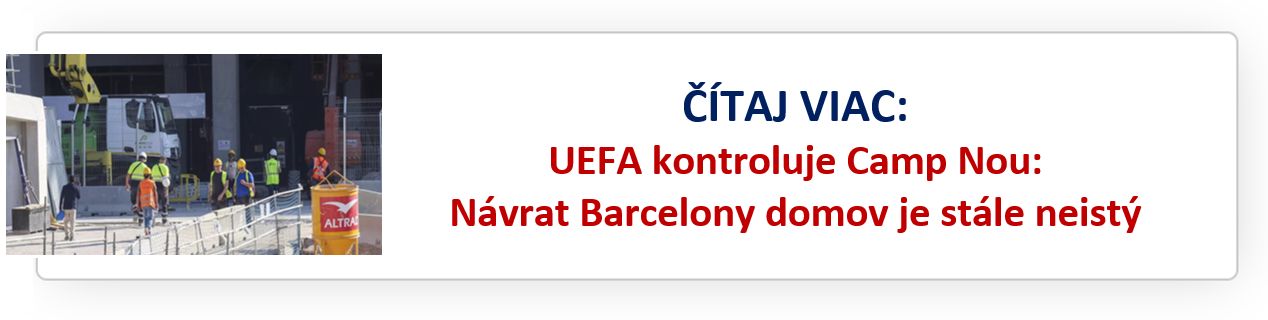 Situáciu navyše komplikuje fakt, že vo štvrtok prebehla na Camp Nou inšpekcia UEFA a podľa prvých informácií sa zdá nepravdepodobné, že štadión bude pripravený hostiť už septembrové zápasy skupinovej fázy Ligy majstrov.