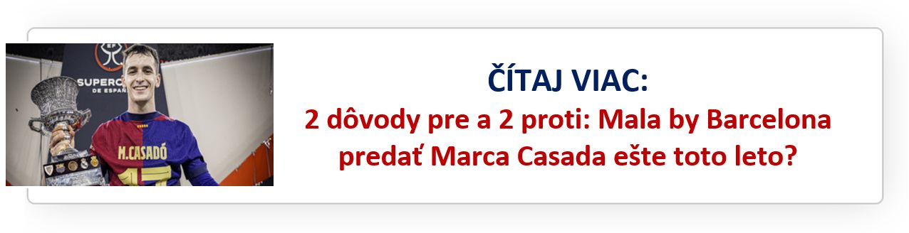 Najviac sa diskutuje o situácii Marca Casada. Mladý stredopoliar už nie je stabilným členom základnej zostavy a športový riaditeľ Deco si uvedomuje, že klub stále potrebuje šetriť. Verí, že prípadná ponuka vo výške okolo 30 miliónov eur by bola pre Barcelonu výhodná – Casadó totiž v úvodnom ligovom zápase proti Mallorce nedostal priestor.