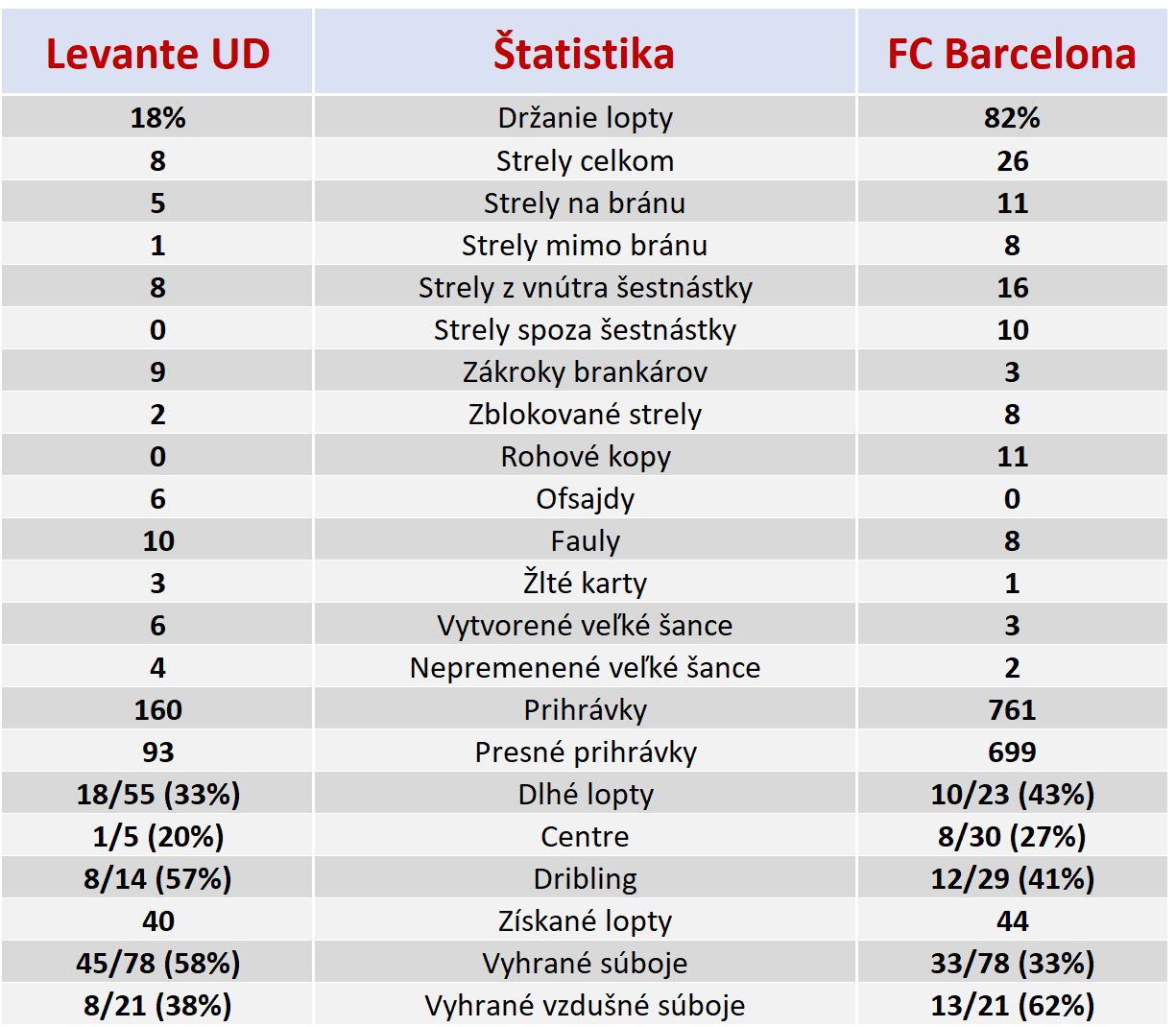 Barcelona dnes hrala s Levante s cieľom udržať si prvé miesto v La Lige po druhom kole. Do prestávky to však vyzeralo veľmi zle a Barça prehrávala 0:2, no v druhom polčase katalánske mužstvo predviedlo ďalšiu remontadu vo svojom štýle a napokon siahlo na tri body.
