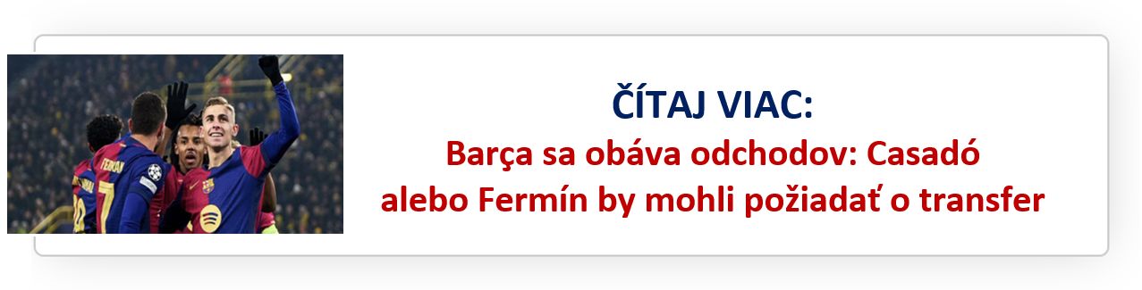 V prípade Fermína však platí, že do tejto chvíle do Barcelony nedorazila žiadna konkrétna ponuka. Aj preto vládne na Camp Nou pokoj – minimálne dovtedy, kým by samotný hráč nepodľahol tlaku zo strany Chelsea, ktorá údajne očakáva jeho rozhodnutie v priebehu nasledujúcich 48 hodín.