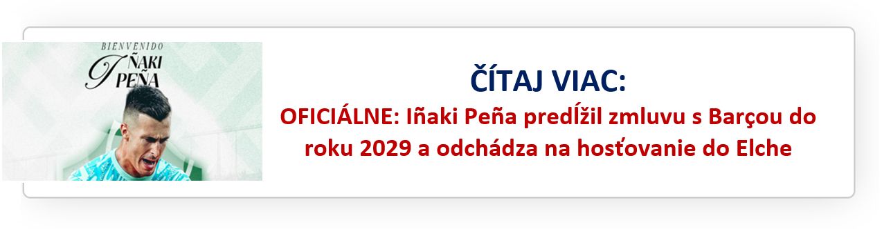 Katalánsky klub si tak ponechal všetky možnosti otvorené. Iñaki Peña dostane priestor na pravidelné minúty v Elche a Barcelona bude mať stále pod kontrolou jeho budúcnosť. Vzhľadom na neistoty okolo Ter Stegena a Szczęsneho ide o krok, ktorý dáva veľký zmysel.