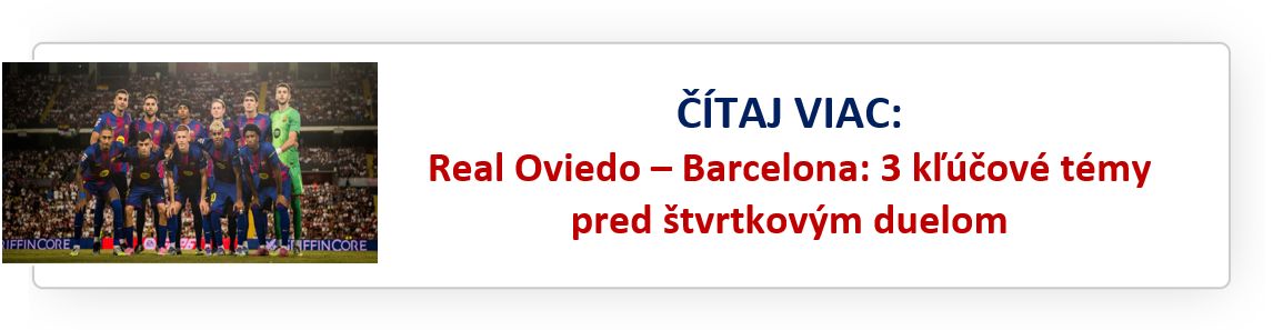 Oviedo sa bude snažiť brániť a čakať na príležitosť, no tlak aj papierové predpoklady hovoria jednoznačne v prospech Barcelony. Zaváhanie si Blaugranas nemôžu dovoliť – už teraz totiž vlak s menom Real Madrid ide na plný plyn.