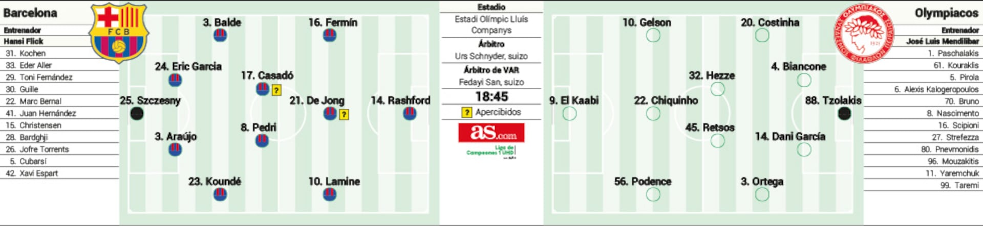 Barça a Olympiakos sa naposledy stretli v sezóne 2017/18 – vtedy Blaugranas zvíťazili na Camp Nou 3:1. Tréner Mendilibar má proti Barcelone extrémne negatívnu bilanciu – 1 víťazstvo v 27 zápasoch (23 prehier).