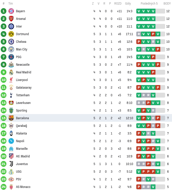 Ak by sa podarilo vyhrať s Eintrachtom, Slaviou a Kodaňou, Barça by mala na konte 16 bodov. V minulej sezóne bol takýto bodový zisk minimum, ktoré zaručovalo miesto v TOP 8. 16 bodov vtedy nazbierali tímy na 6., 7. a 8. mieste: Bayer Leverkusen, Lille a Aston Villa. Dodajme, že až päť tímov vtedy získalo 15 bodov: Atalanta, Borussia Dortmund, Real Madrid, Bayern a Miláno. Bolo teda veľmi „tesno“.