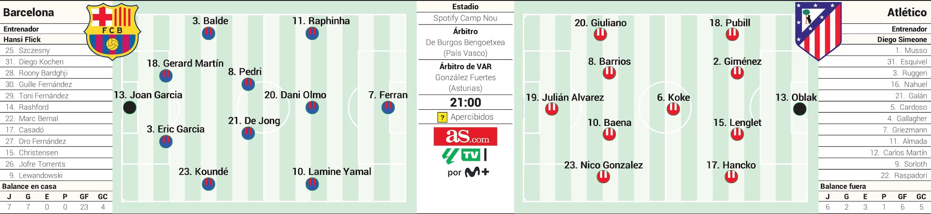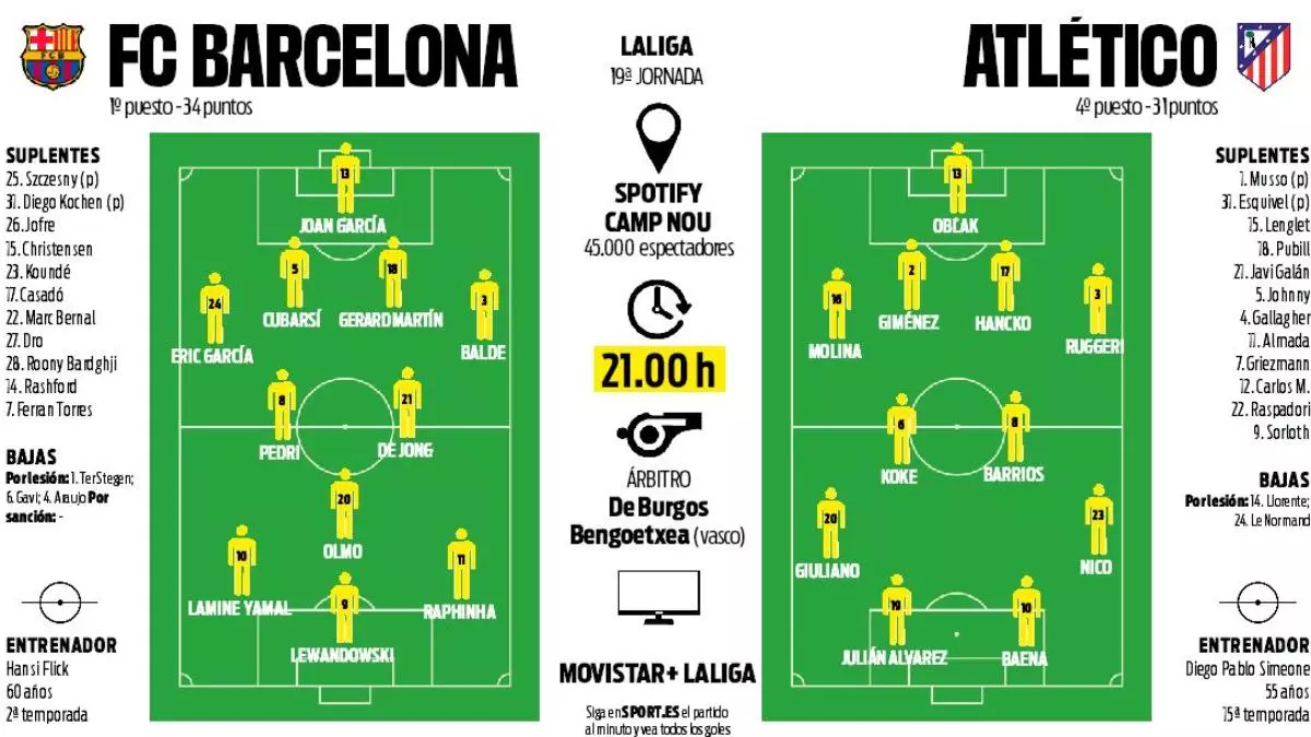 Dnes večer sa na Spotify Camp Nou zastaví čas. FC Barcelona, posilnená o návrat kľúčových hviezd, hostí v predohrávke 19. kola Atlético Madrid. V stávke je veľa: ak Barça vyhrá, upevní si prvé miesto. Ak uspeje Simeoneho rozbehnutá mašina, na čele tabuľky sa body vyrovnajú.