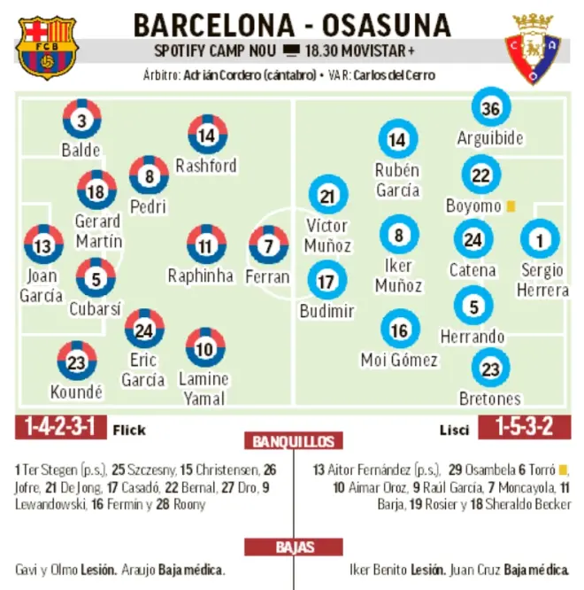 Osasuna síce vonku nevyhrala a strelila len tri góly, no úplne podceniť ju nemožno. Aimar Oroz a Budimir sú hráči, ktorí dokážu potrestať každé zaváhanie, a Lisci stále zvažuje, či nastúpi so štvor- alebo päťčlennou obranou.