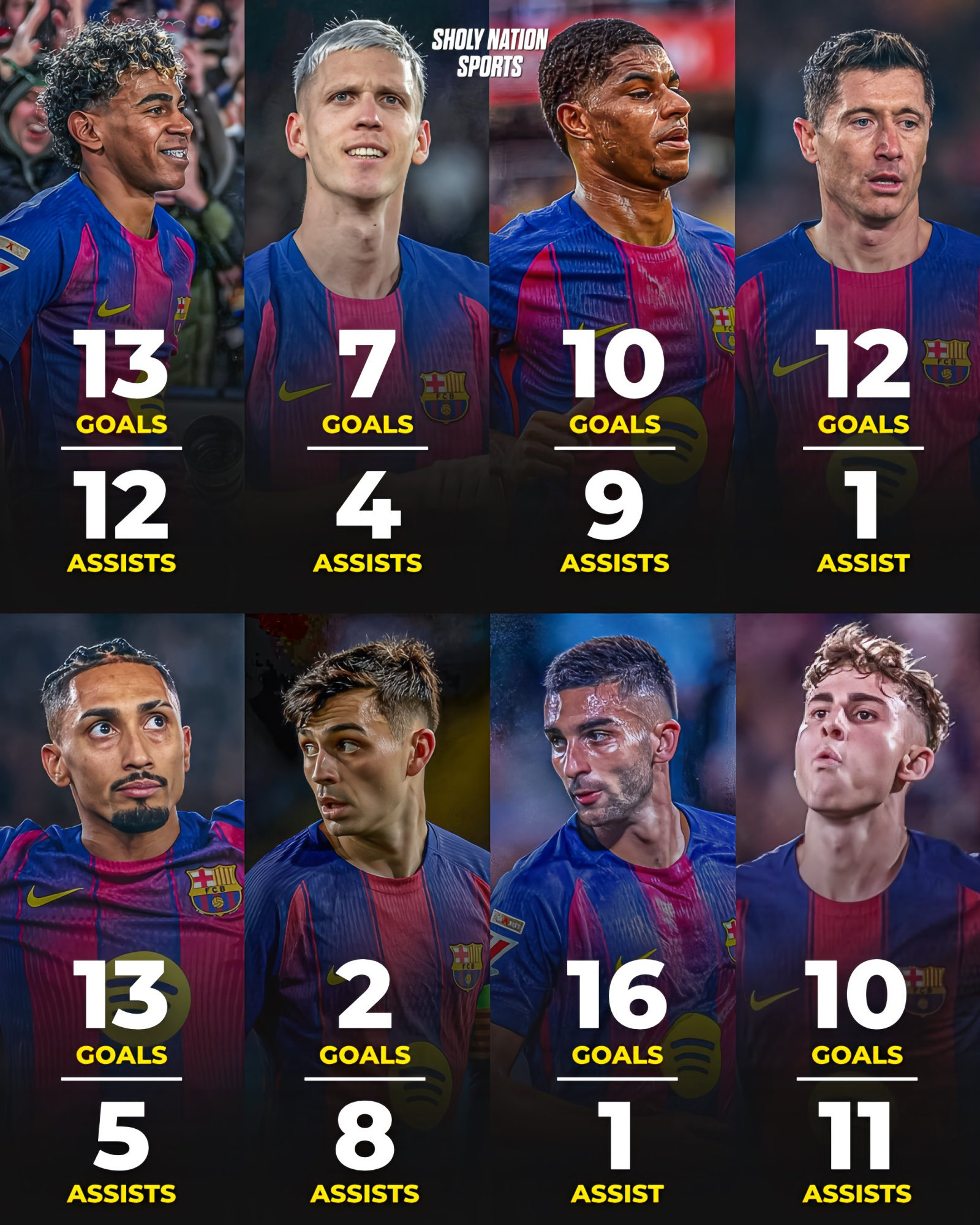 10 - Six Barcelona players have scored 10+ goals in all competitions this season: Ferran Torres (16), Raphinha (13), Lamine (13), Lewandowski (12), Fermín (10) and Rashford (10). No other team from the Europe's top five leagues has more than three. Steamroller. pic.twitter.com/qaYuWET4o4