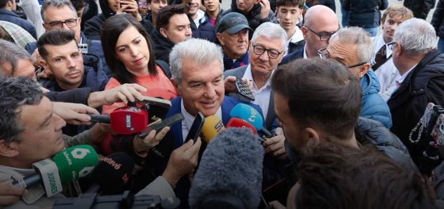 Joan Laporta pre médiá: "Tieto pokusy – alebo skôr tá neschopnosť destabilizovať tím – keď hovorí o Olmovi v deň, keď hráme prvý zápas finále Copa del Rey proti Atléticu Madrid, keď hovorí o Joanovi Garcíovi, o Cancelovi… to ničomu nepomáha. Iba to destabilizuje a ukazuje nedostatok vedomostí a nedostatok skúseností s tým, čo znamená veľká Barcelona."