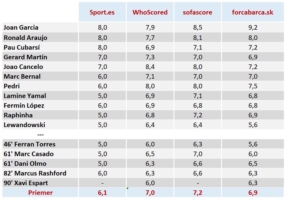 Barcelona na Spotify Camp Nou zlomila odpor húževnatého Raya Vallecana vďaka nekompromisnej hlavičke kapitána Ronalda Araúja, no skutočného hrdinu sme dnes hľadali na opačnom konci ihriska. Joan García vytiahol tri zákroky svetových parametrov a opäť raz potvrdil, že je momentálne najlepším brankárom v La Lige. Ako dopadlo hodnotenie za tento zápas?